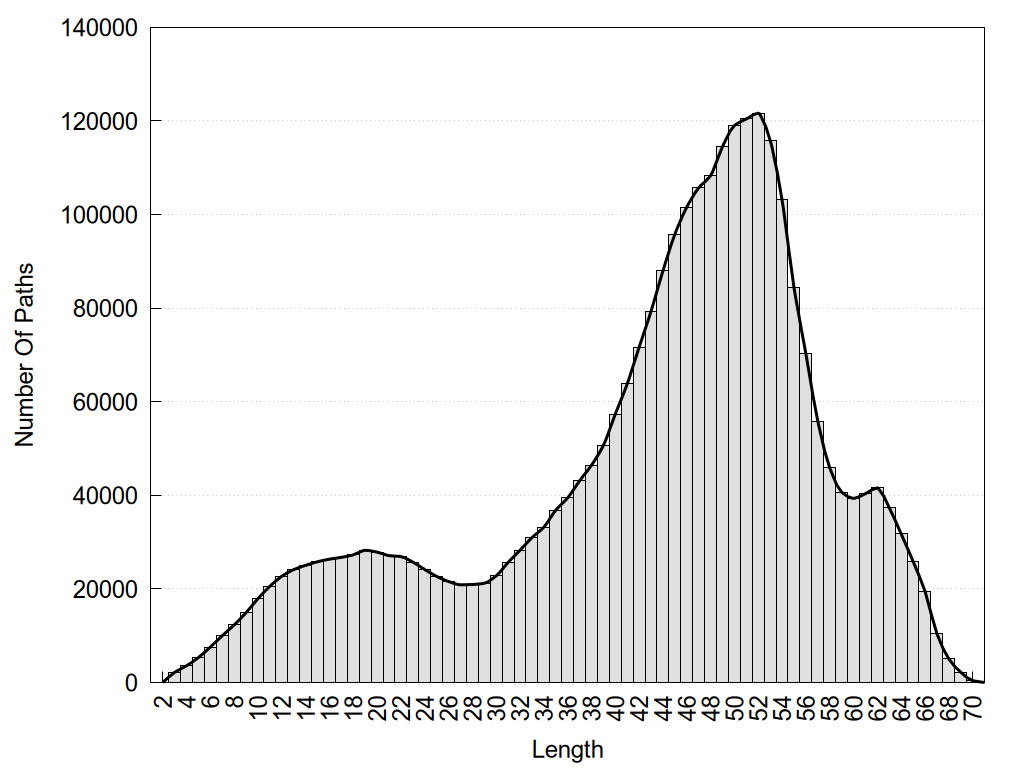 histograms of path distribution according to several parameters