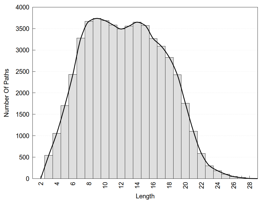 histograms of path distribution according to several parameters