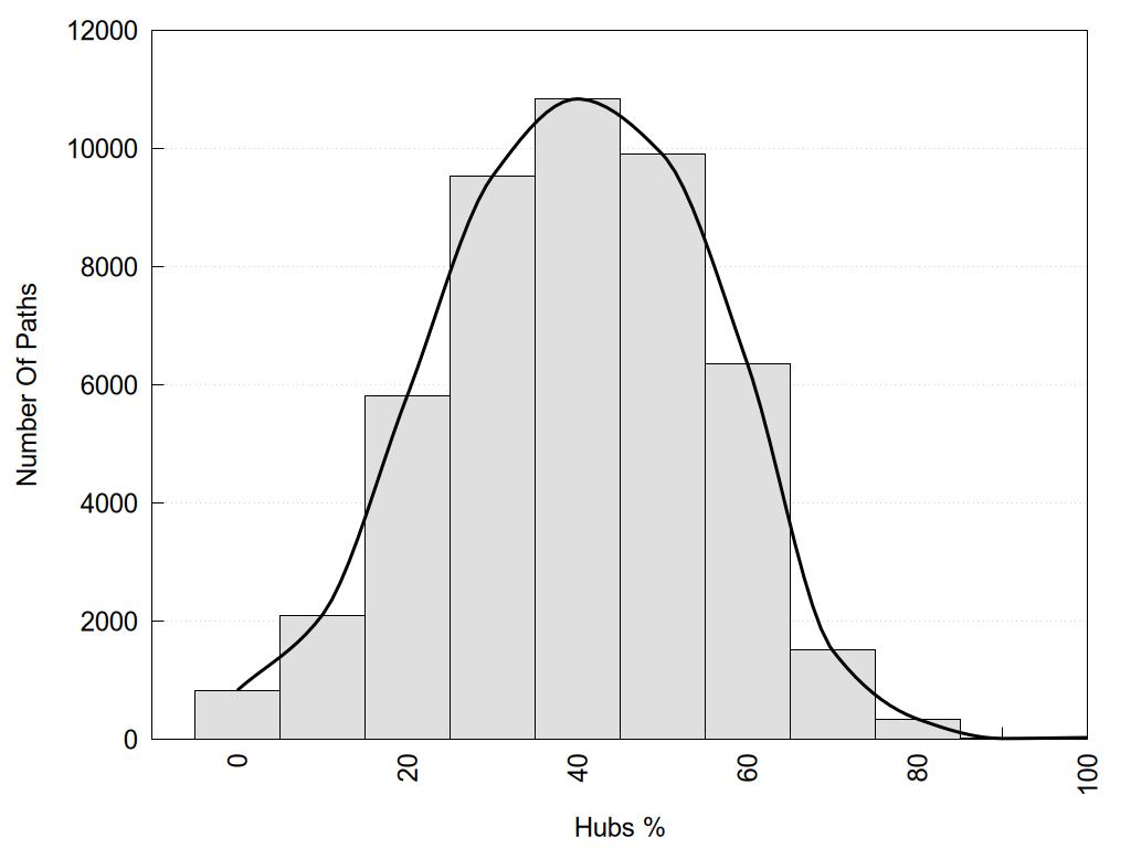 Hub1?, Hub2?: "Yes" if the corresponding node has more than 3 links, otherwise "No".