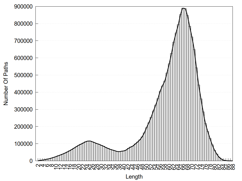 histograms of path distribution according to several parameters