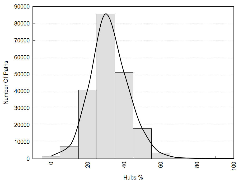 Hub1?, Hub2?: "Yes" if the corresponding node has more than 3 links, otherwise "No".