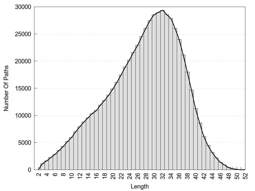 histograms of path distribution according to several parameters
