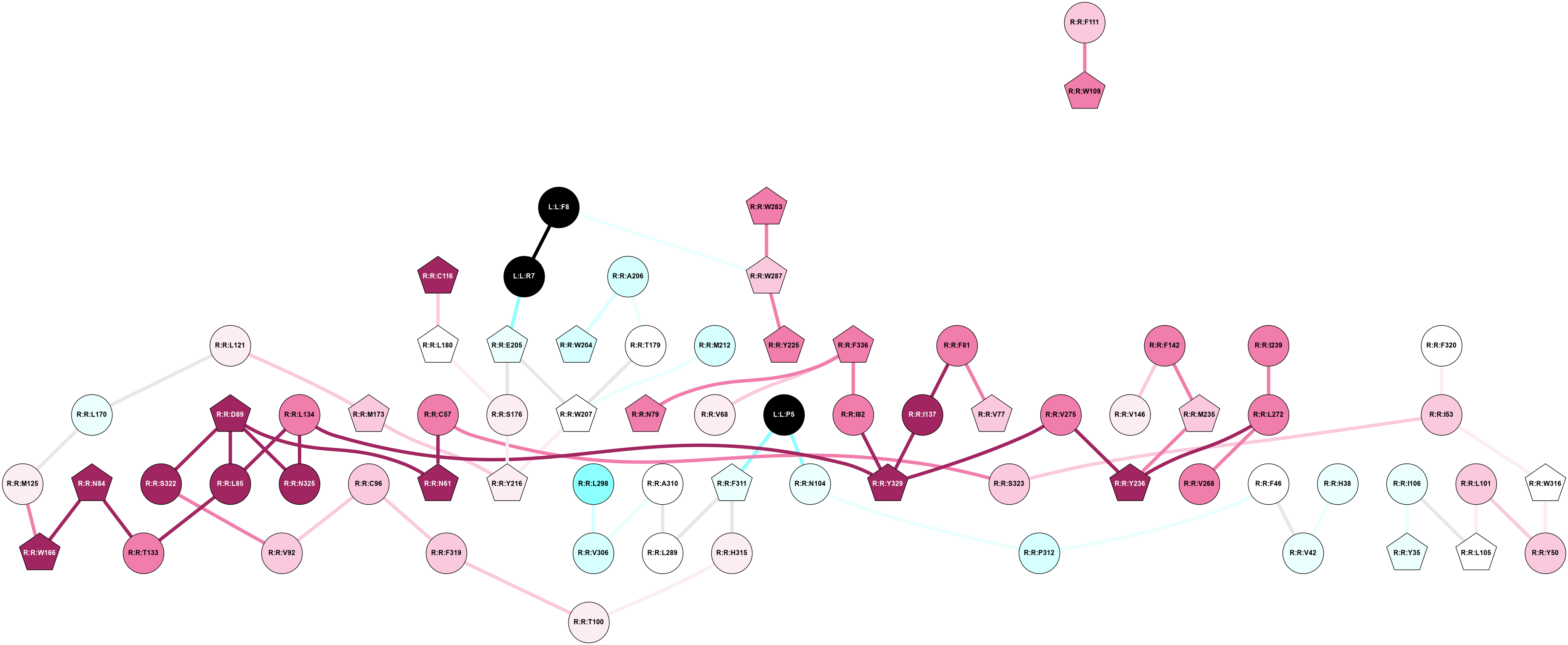 Links and nodes colored according to ConSurf Conservation Grade (See documentation): n/a 1 2 3 4 5 6 7 8 9 |
