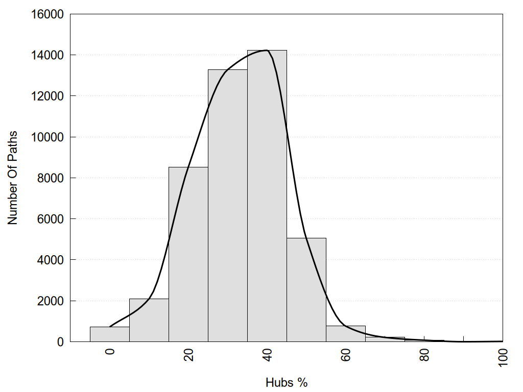 Hub1?, Hub2?: "Yes" if the corresponding node has more than 3 links, otherwise "No".