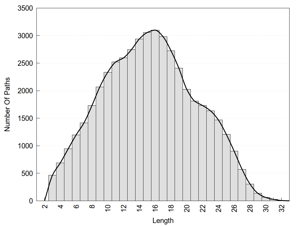 histograms of path distribution according to several parameters