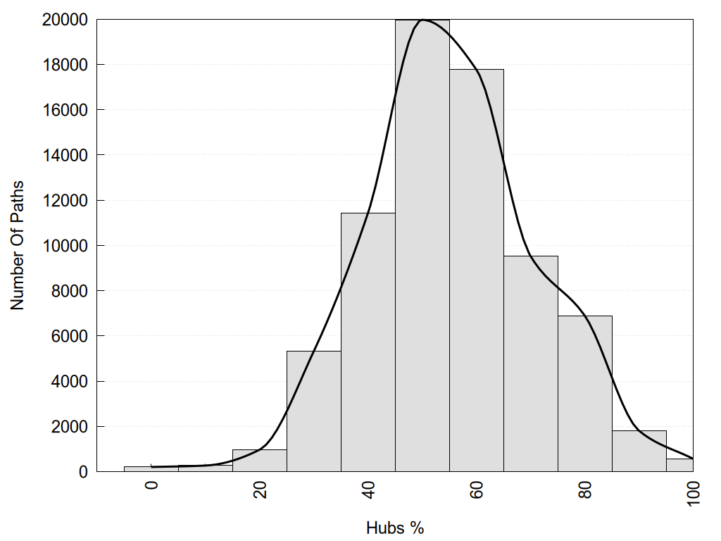 Hub1?, Hub2?: "Yes" if the corresponding node has more than 3 links, otherwise "No".