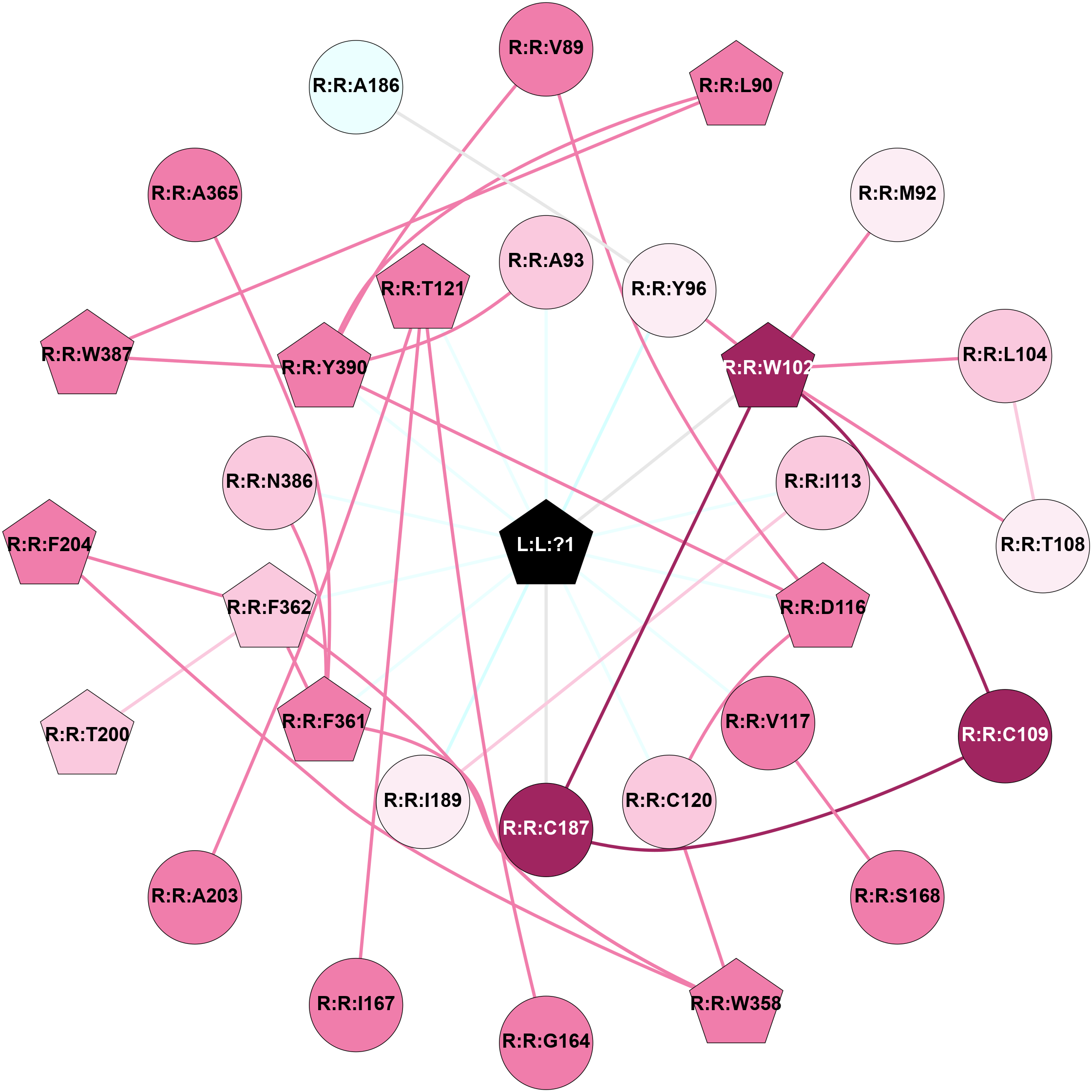 Links and nodes colored according to ConSurf Conservation Grade (See documentation): n/a 1 2 3 4 5 6 7 8 9 |