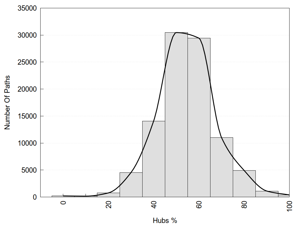 Hub1?, Hub2?: "Yes" if the corresponding node has more than 3 links, otherwise "No".