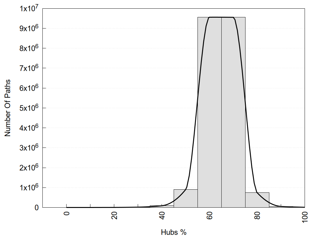Hub1?, Hub2?: "Yes" if the corresponding node has more than 3 links, otherwise "No".