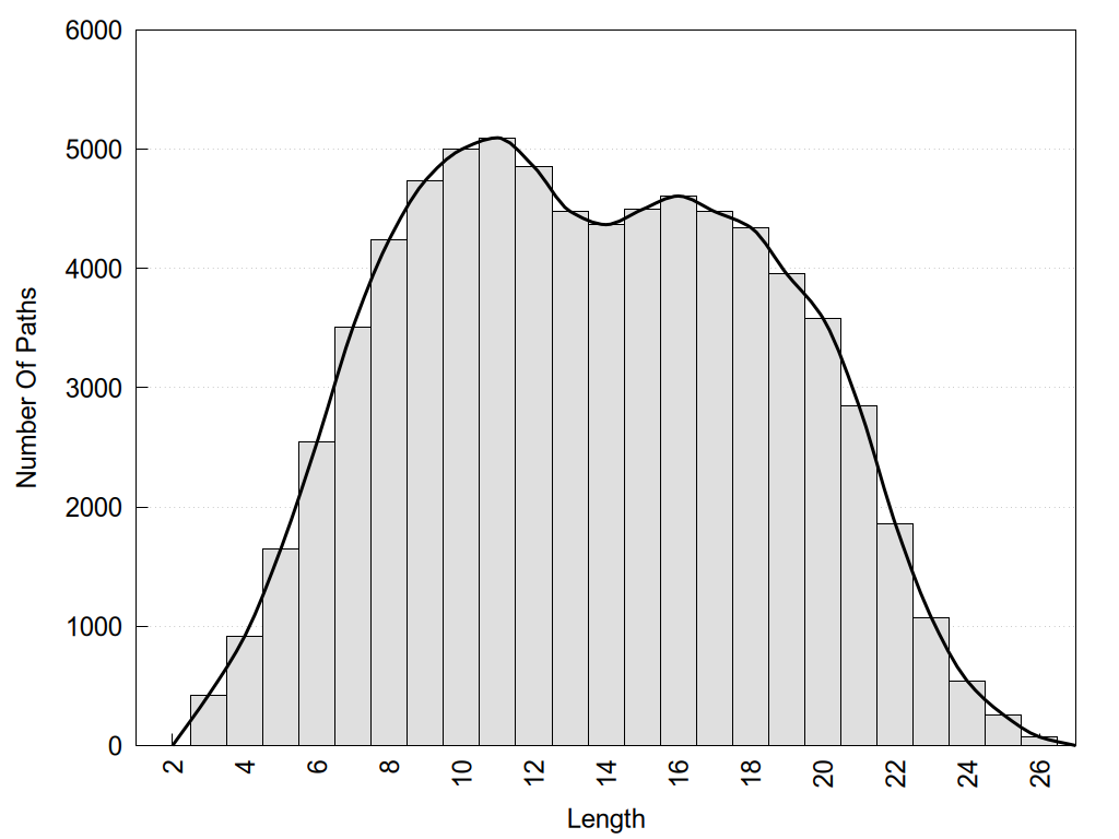 histograms of path distribution according to several parameters