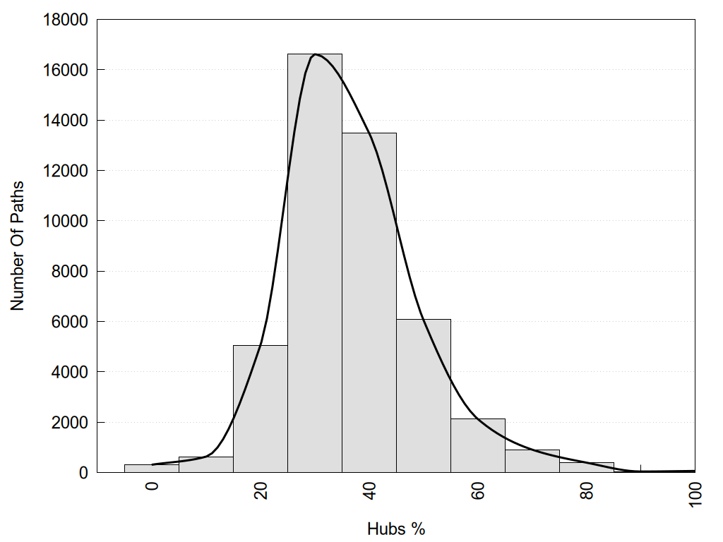 Hub1?, Hub2?: "Yes" if the corresponding node has more than 3 links, otherwise "No".
