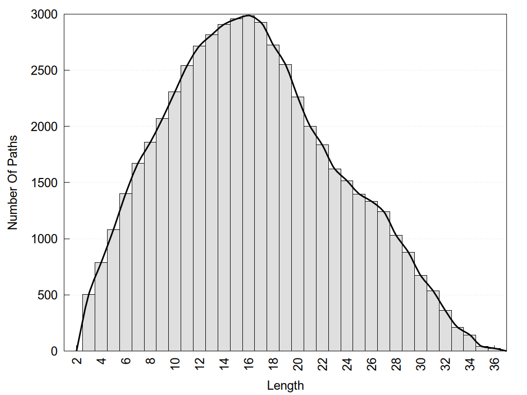 histograms of path distribution according to several parameters