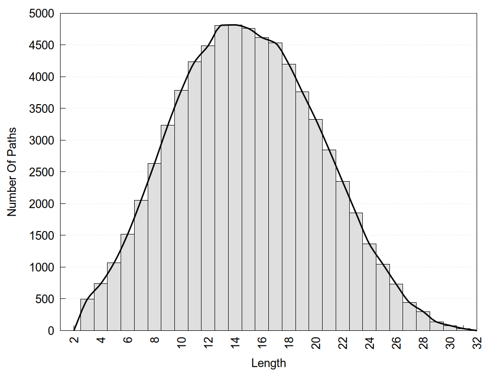 histograms of path distribution according to several parameters