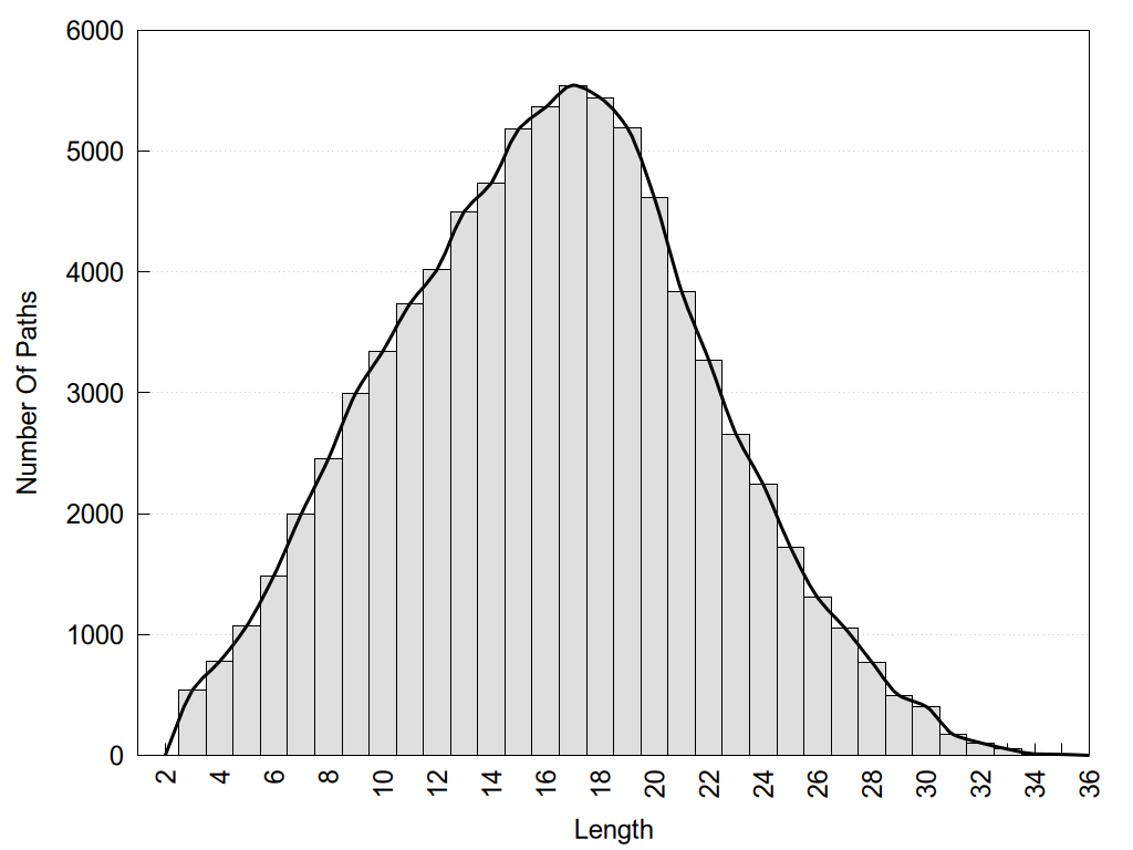 histograms of path distribution according to several parameters
